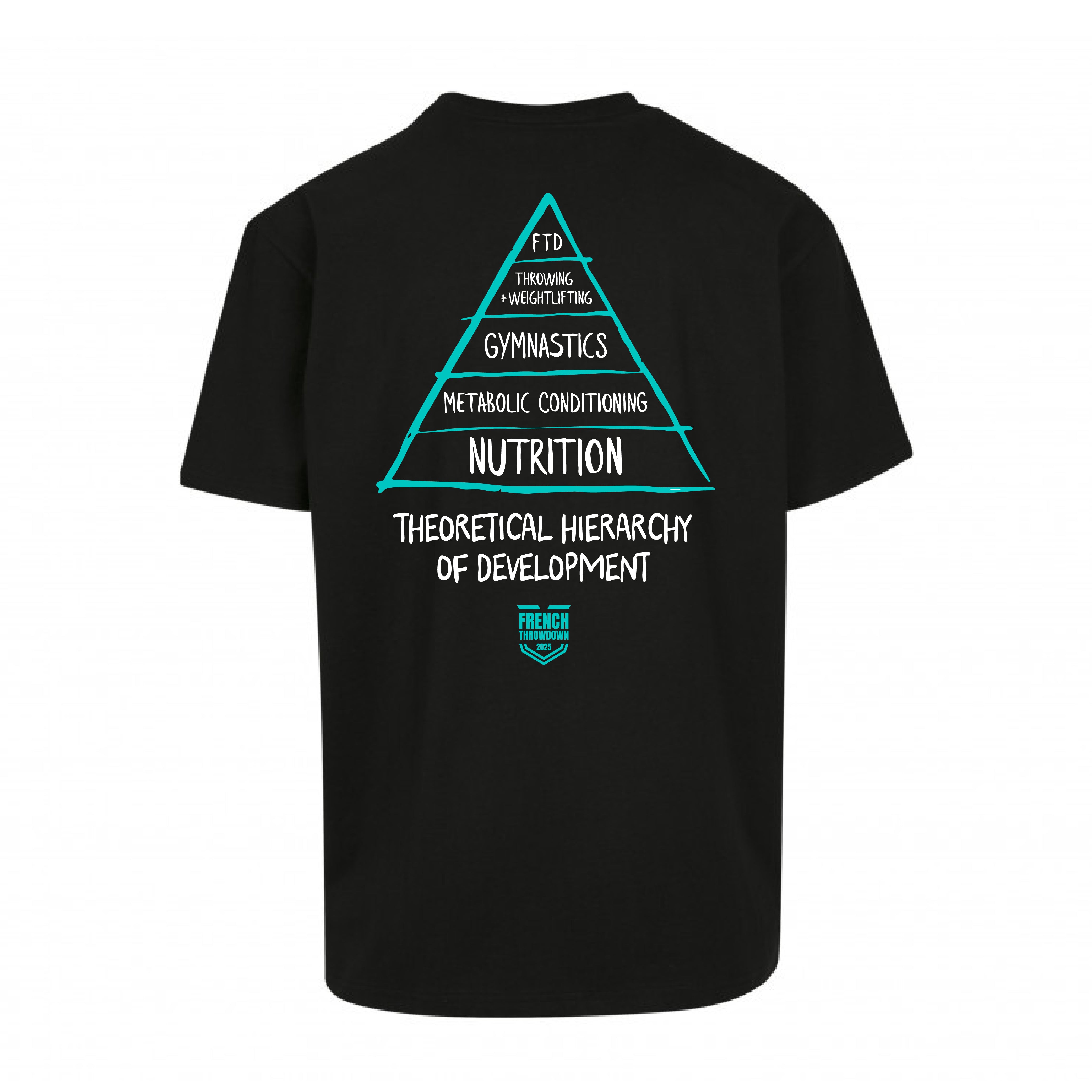 Affichez votre passion pour le CrossFit avec ce t-shirt exclusif French Throwdown x CrossFit Fitness Pyramid, inspiré de l’iconique pyramide de la condition physique, véritable fondation de la méthodologie CrossFit.